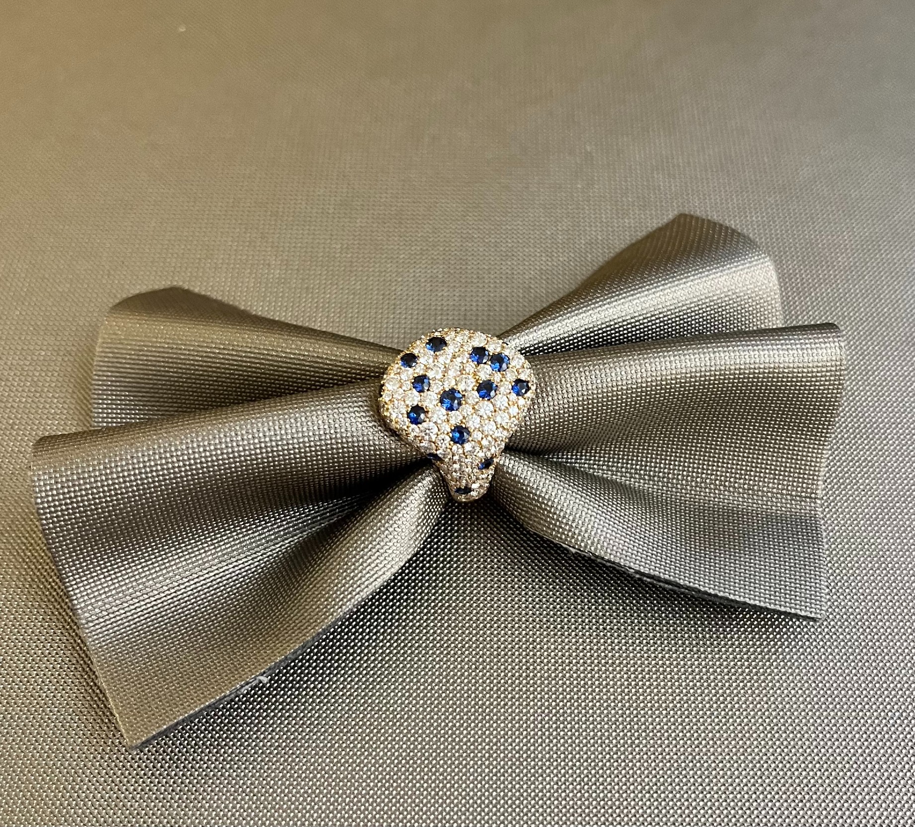 Anello in Oro Bianco con pavé di diamanti e zaffiri