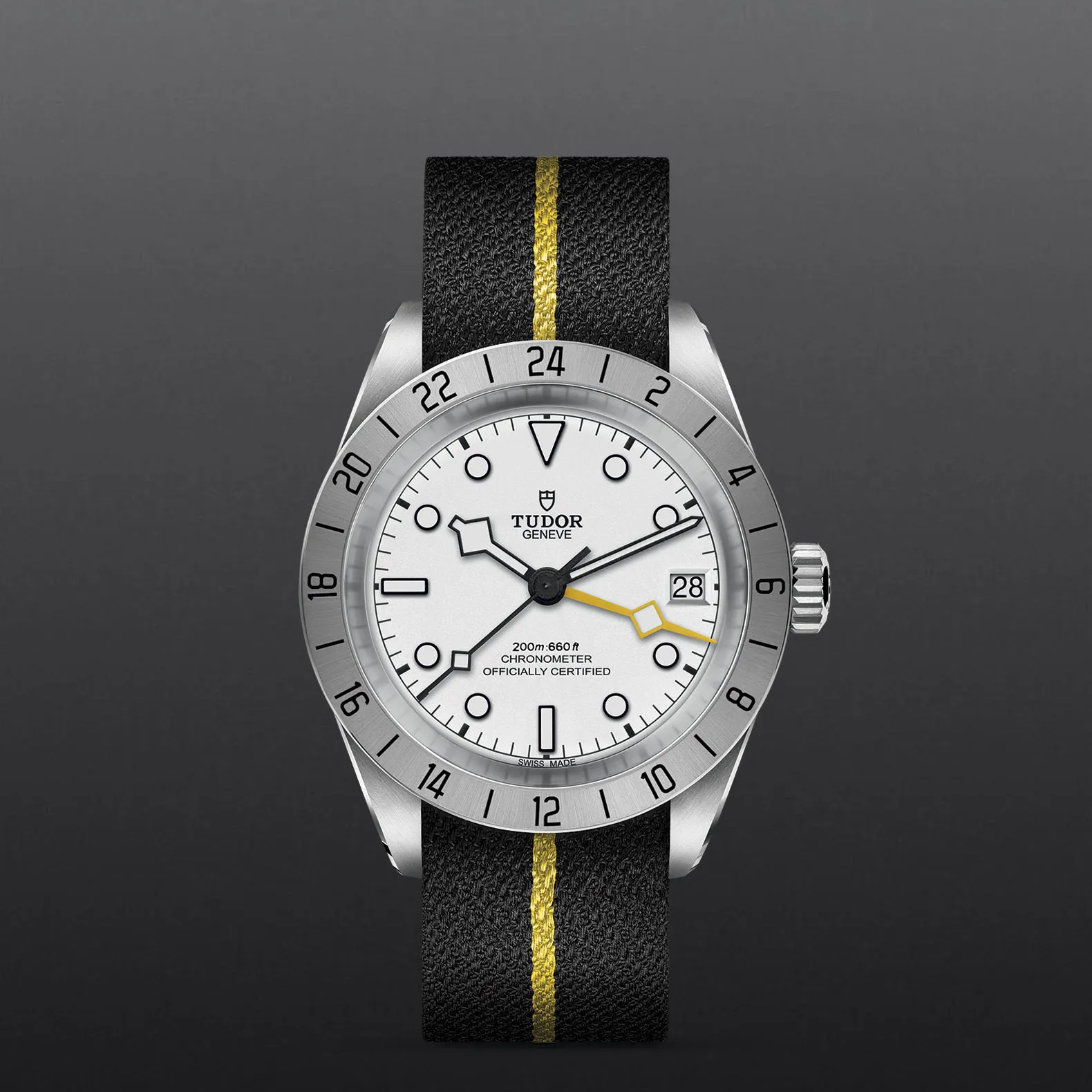Richiedi informazioniIl Black Bay Pro è dotato di doppio fuso orario, una complicazione tecnica che permette di visualizzare l’ora locale senza perdere di vista l’ora di un altro fuso orario. Compatto, robusto e sportivo, questo modello presenta numerosi dettagli estetici unici e celebra lo spirito degli orologi tecnici che TUDOR ha prodotto per i professionisti nel corso della sua storia. Riconoscibile grazie alla lunetta fissa satinata graduata 24 ore e alla lancetta “Snowflake” 24 ore di colore giallo, il Black Bay Pro è animato dal Calibro di Manifattura TUDOR MT5652 con funzione GMT integrata.